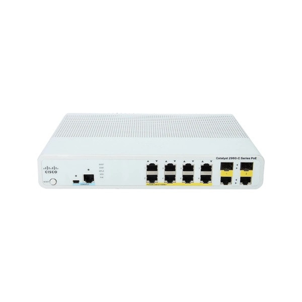 سوییچ WS-C2960C-8PC-L سیسکو، 8 پورت اترنت 10/100 و دو پورت آپلینک SFP در قسمت پنل جلویی خود دارد. پورت های سوئیچ شبکه دارای 2 دسته اصلی هستند: پورت uplink و پورت normal (downlink). پورت های uplink، سرعت بالاتری دارند و برای اتصال به دستگاه های دیگر در شبکه استفاده می شود. در حالی که پورت های عادی فقط برای انتقال داده های منظم استفاده می شوند. رنگ چراغ های جلوی سوئیچ وضعیت Port statusSYST (سیستمLED) و STAT و SPEED و POE را به ما نشان می دهند. سوئیچ 8 پورتی WS-C2960C-8PC-L از GLC-FE-100FX، GLC-FE-100LX، GLC-FE-100BX-D&GLC-FE-100BX-U پشتیبانی می کند.
